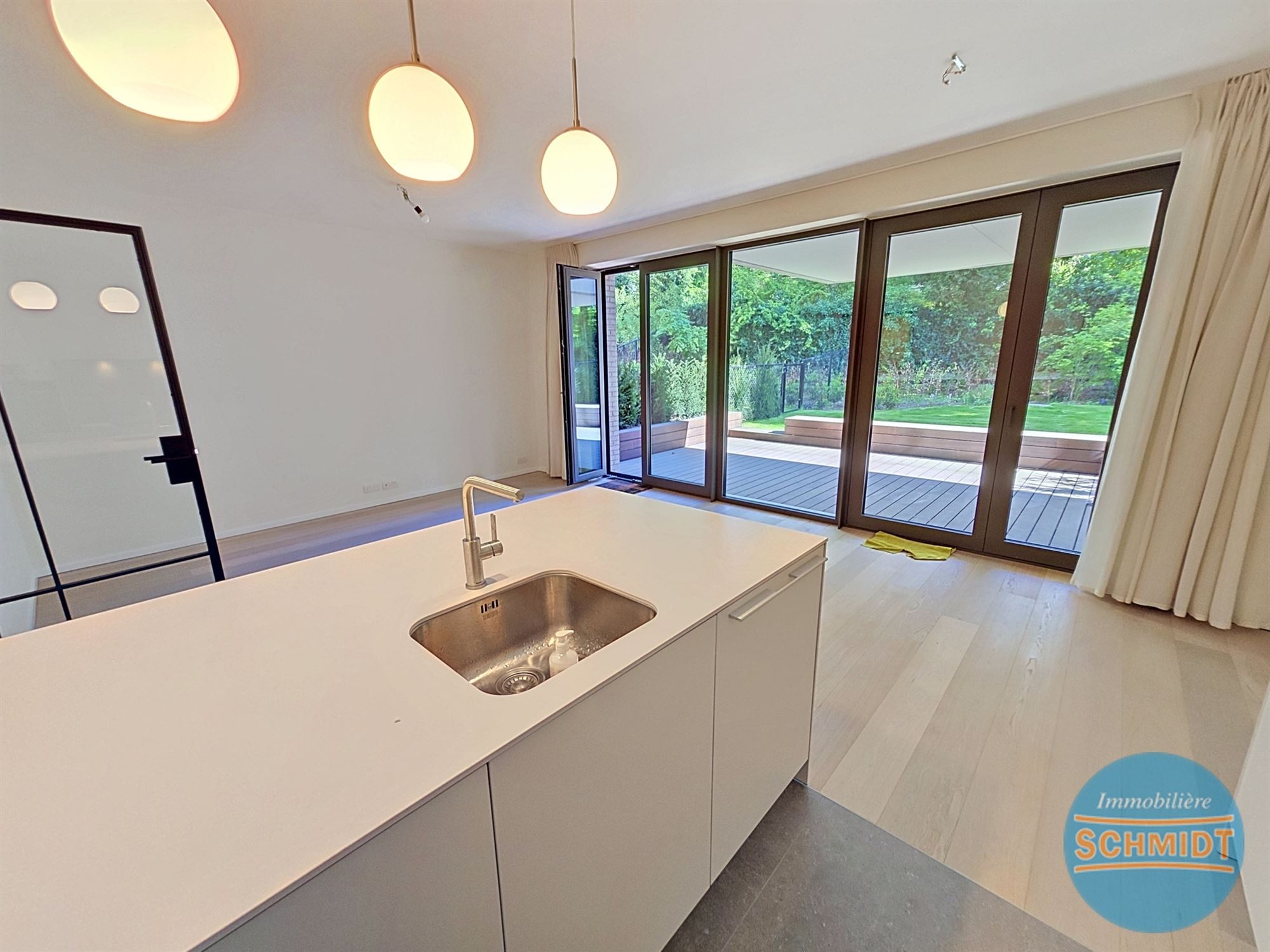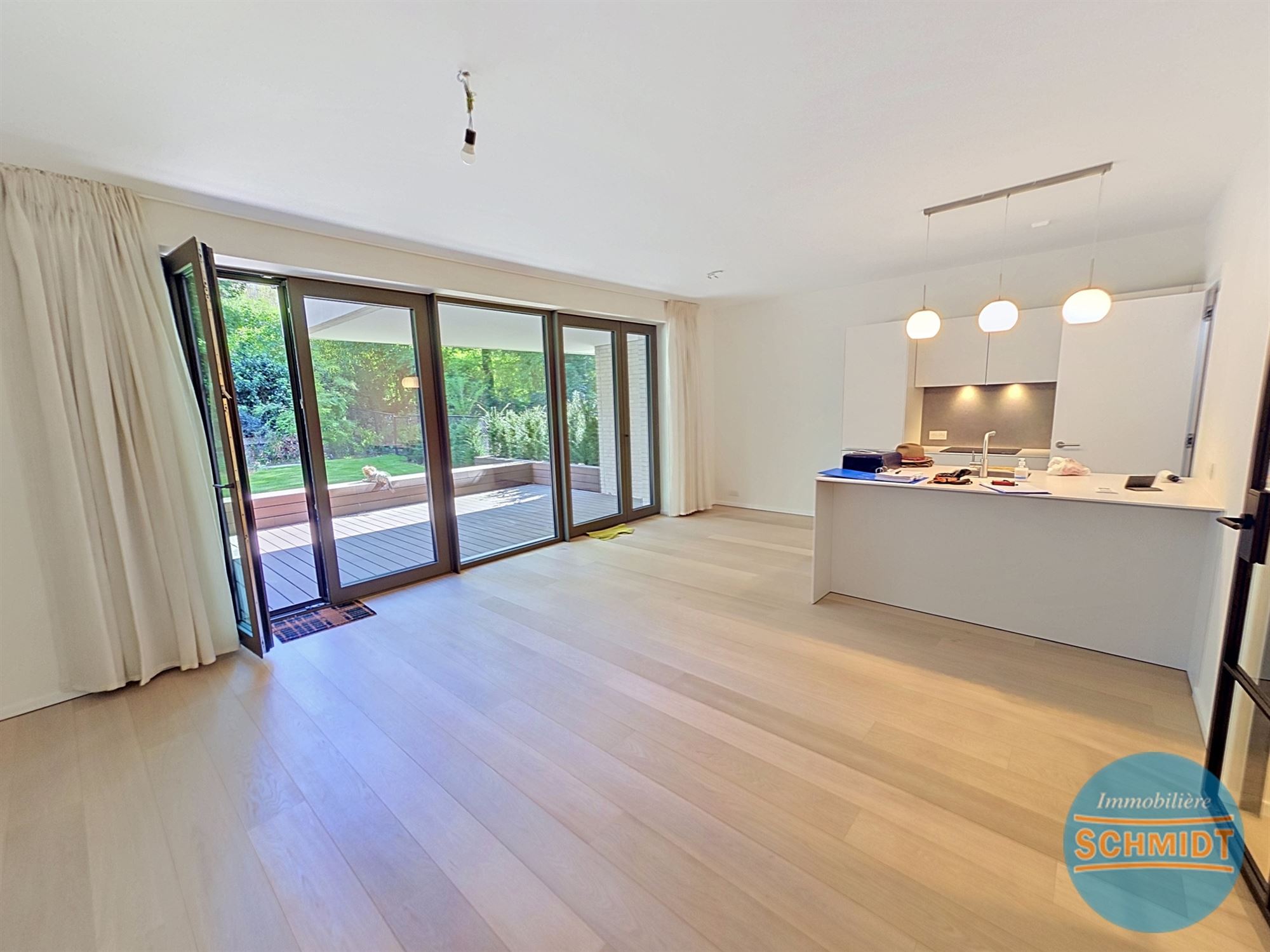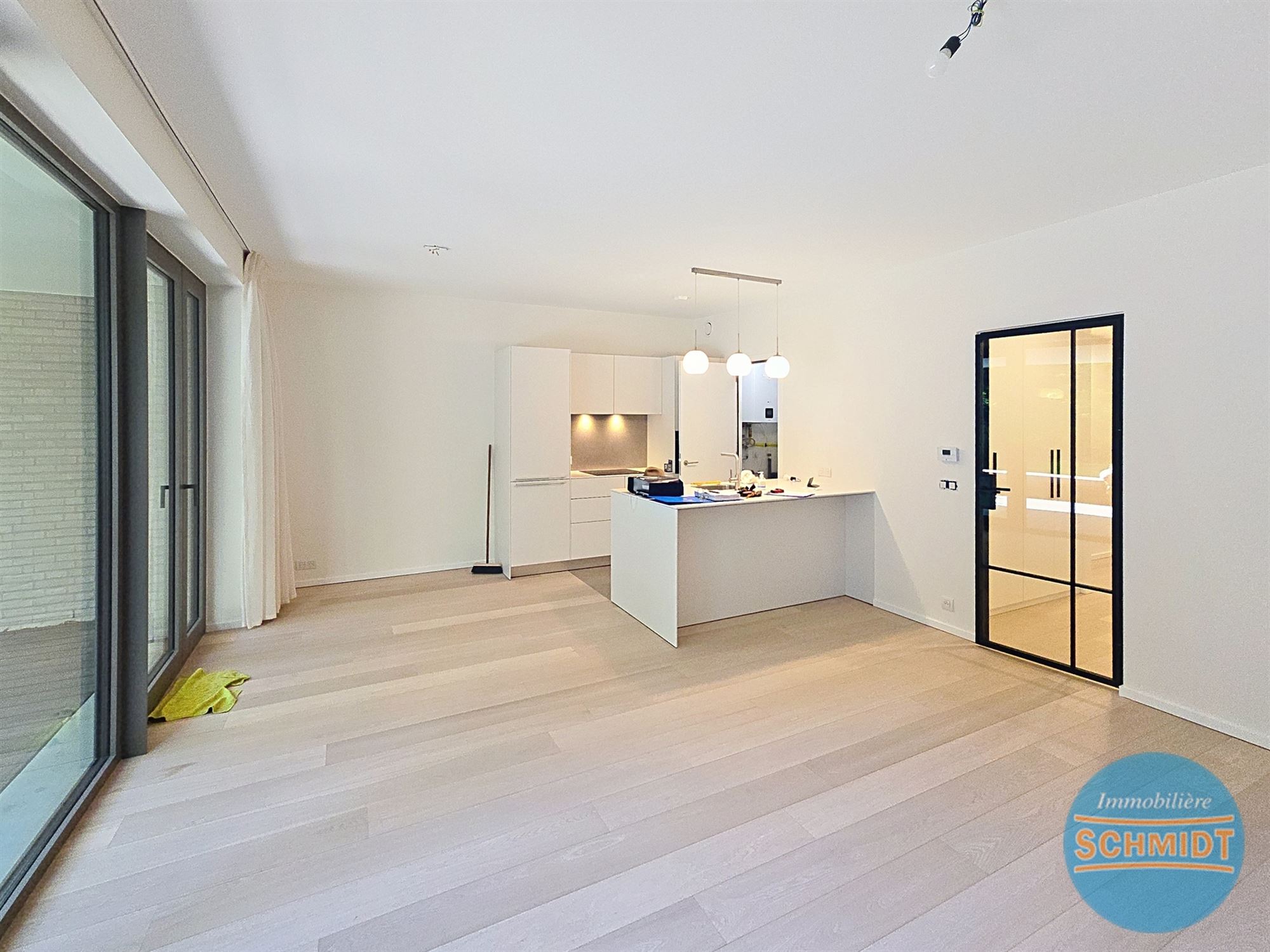 IMMOSCHMIDT (Ref. 29587) - Uccle (De Fré)- LIBRE IMMEDIATEMENT : Très bel appartement dans un immeuble neuf pour une 1ère occupation au rez-de-chaussée, il se compose d'un beau living avec cuisine ouverte super équipée, d'une chaufferie VMC, d'une chambre avec coin dressing, d'une deuxième chambre avec placards, d'une salle de bain, d'une salle de douche, de 2 caves, d'un jardin de 60m² et de 2 emplacements de parking. À voir ! PEB: A- / CO² : 6.93kg/(m².an° - Visites sur RDV au 02/736.77.44. Plus de détails et autres biens sur www.immoschmidt.be