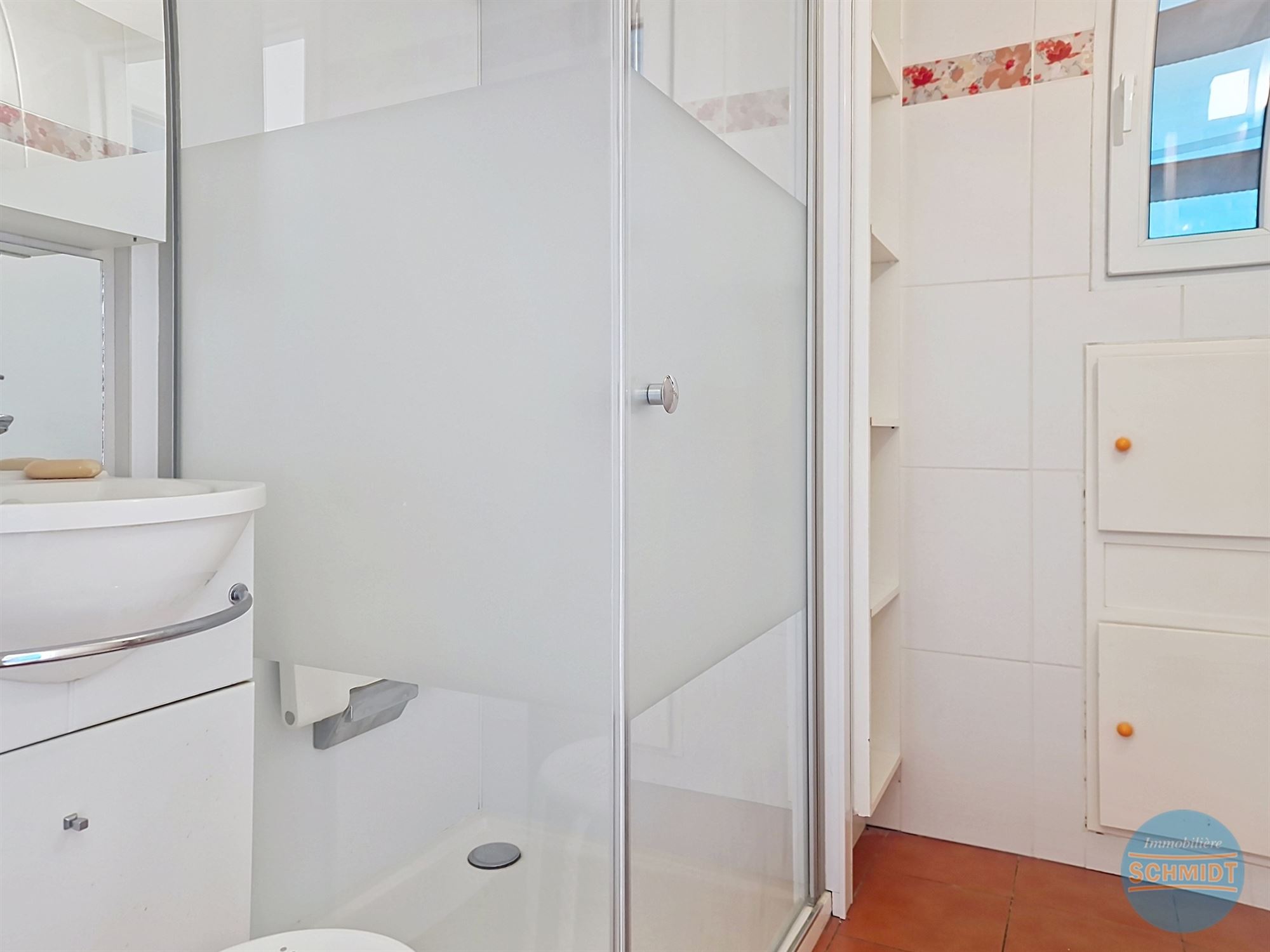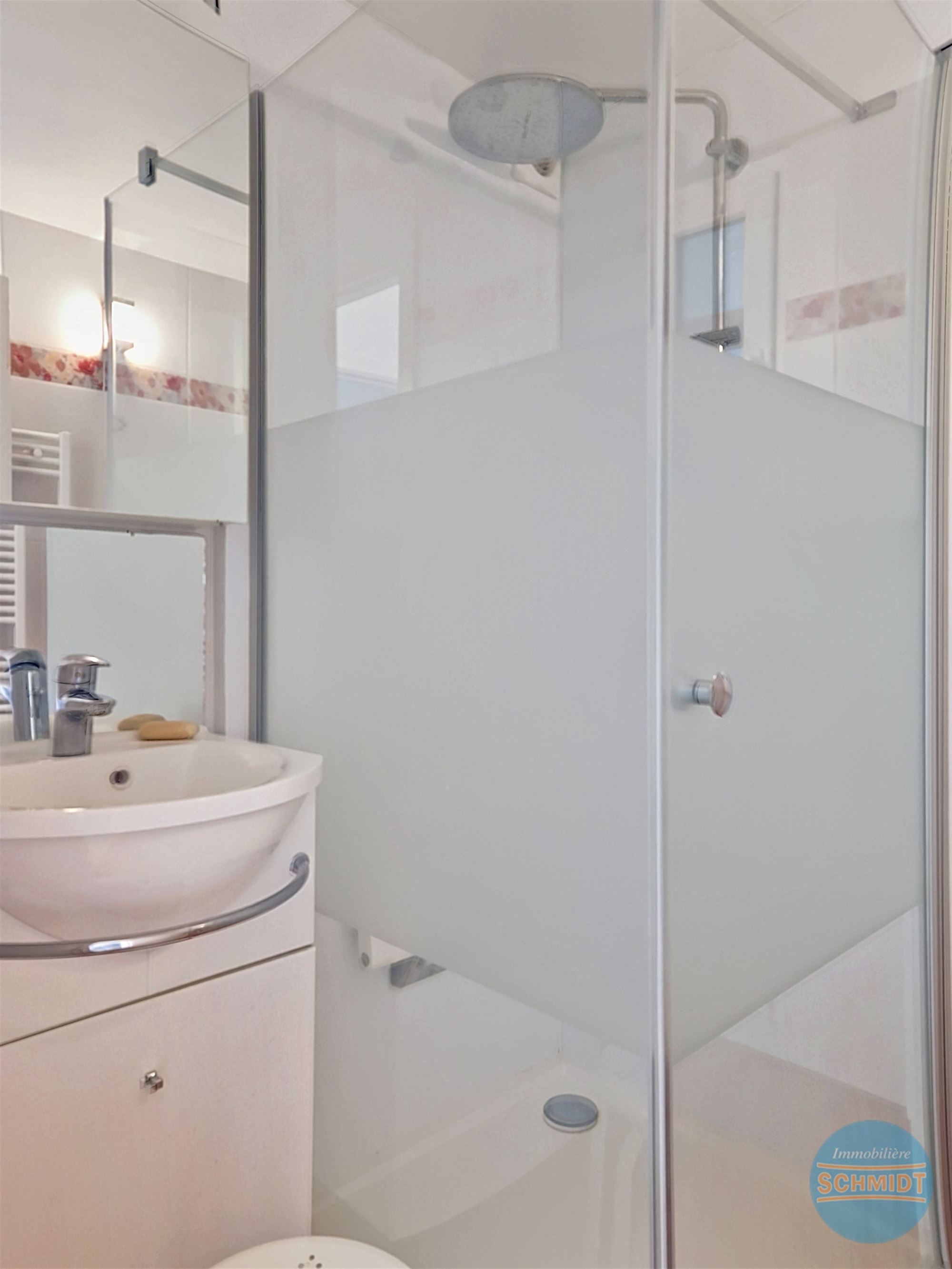Salle de douche ±4.3m² (2.1 x 2.05) douche, lavabo / Carrelage