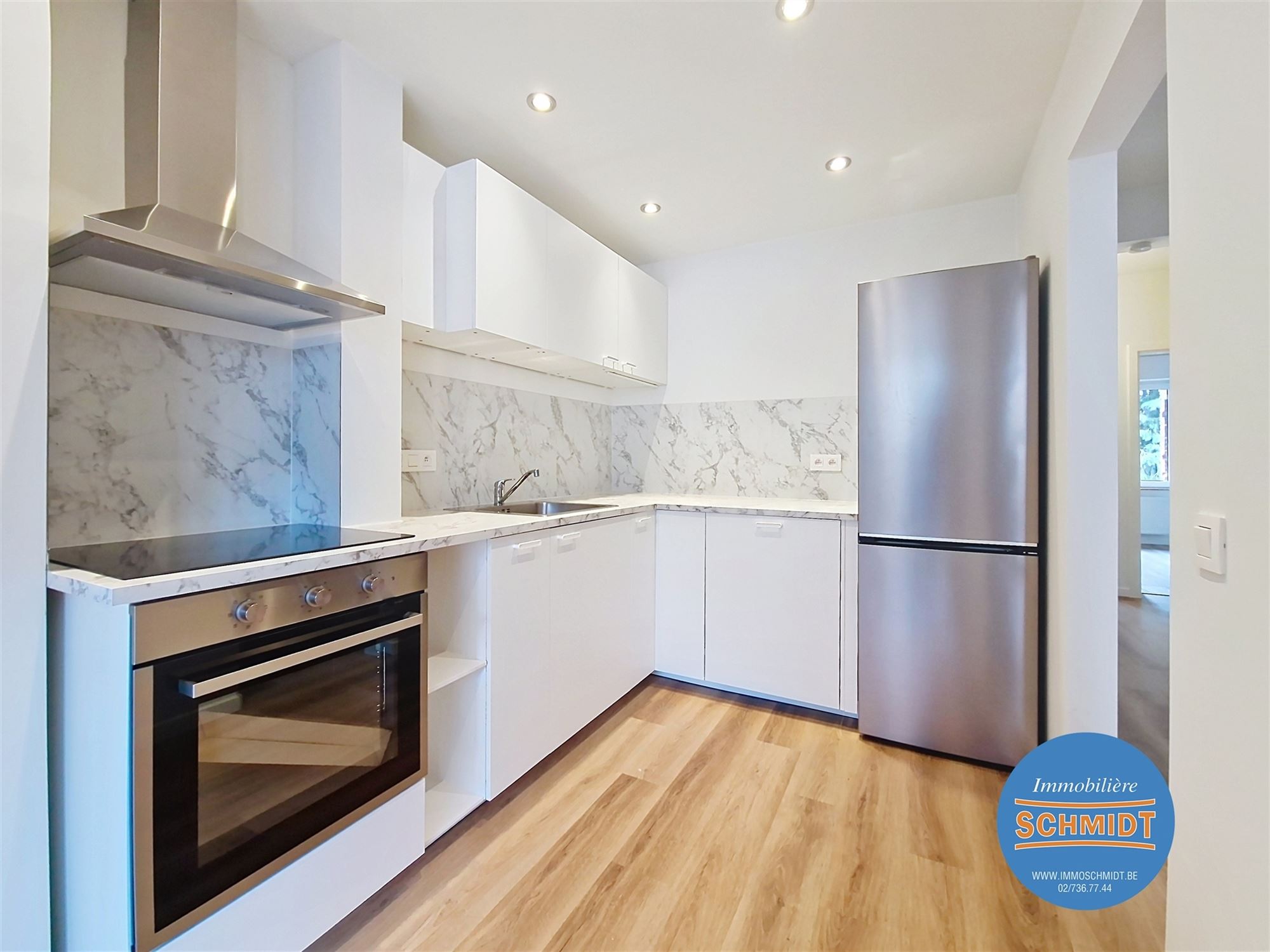 IMMOSCHMIDT (Réf. 29407) - WOLUWE-SAINT-LAMBERT (Gribaumont) - LIBRE IMMEDIATEMENT : Magnifique appartement de 80m² au 2ème étage rénové dans un quartier calme lumineux SANS CHARGES COMMUNES qui se compose d'un hall d'entrée, d'un grand living, d'une cuisine super-équipée neuve, de deux chambres , d'une SDB, d'un WC séparé et d'un balcon d'environ 5m². Double vitrage, cuisine neuve, d'une chaudière au gaz individuelle. Situation idéal, proche des commerces, écoles et transports en commun. PEB: C - Visites sur RDV au 02/736.77.44. Plus de détails et autres biens sur www.immoschmidt.be