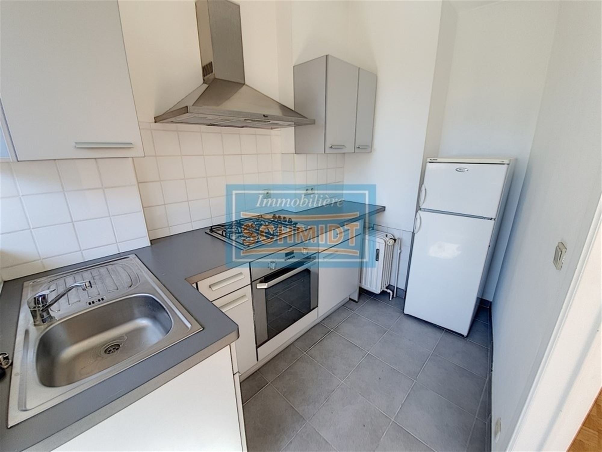 CUISINE ÉQUIPÉE ±6m² (1,8 x 3,0) (meubles, évier, cuisinière gaz, four, hotte, frigo / Carrelages