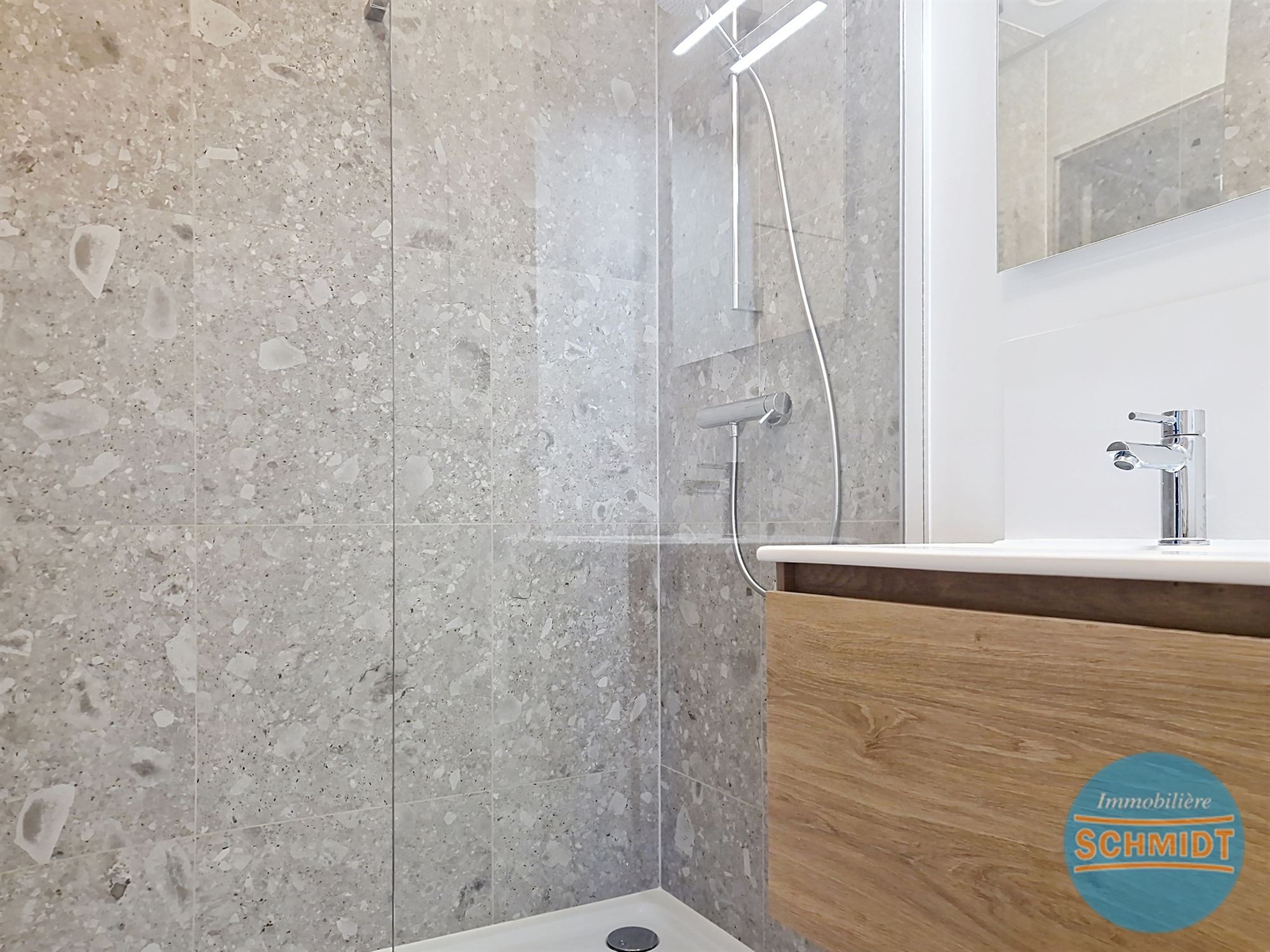 IMMOSCHMIDT Réf. 29611 - WOLUWE-SAINT-LAMBERT (Marcel Thierry)- LIBRE IMMEDIATEMENT : Dans un immeuble neuf, 1ère occupation, beau studio rénové de 38m² se composant d'un beau spacieux living, d' une cuisine ouverte super équipée, d'une salle de douche et d'une chaufferie avec un système VMC double flux. Une cave et une place de parking sont également à disposition. Proche des commerces et transports en commun. PEB B+ : 50.54 kWh/an/m² - CO2 : 7.62kg - À voir ! Visites sur RDV au 02/736.77.44. Plus de détails et autres biens sur www.immoschmidt.be