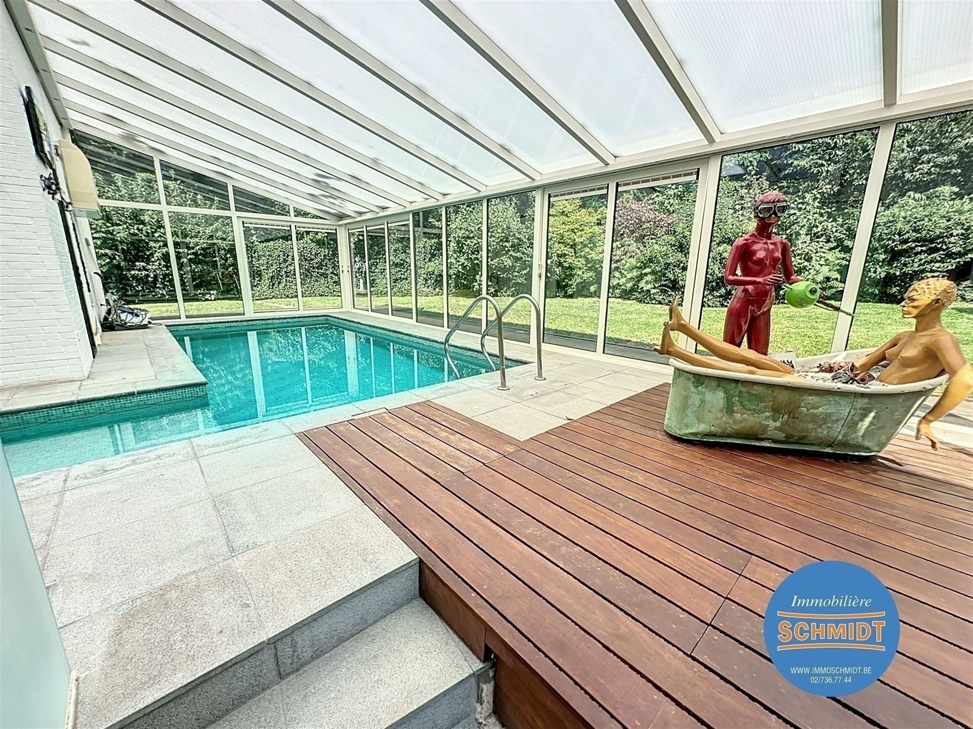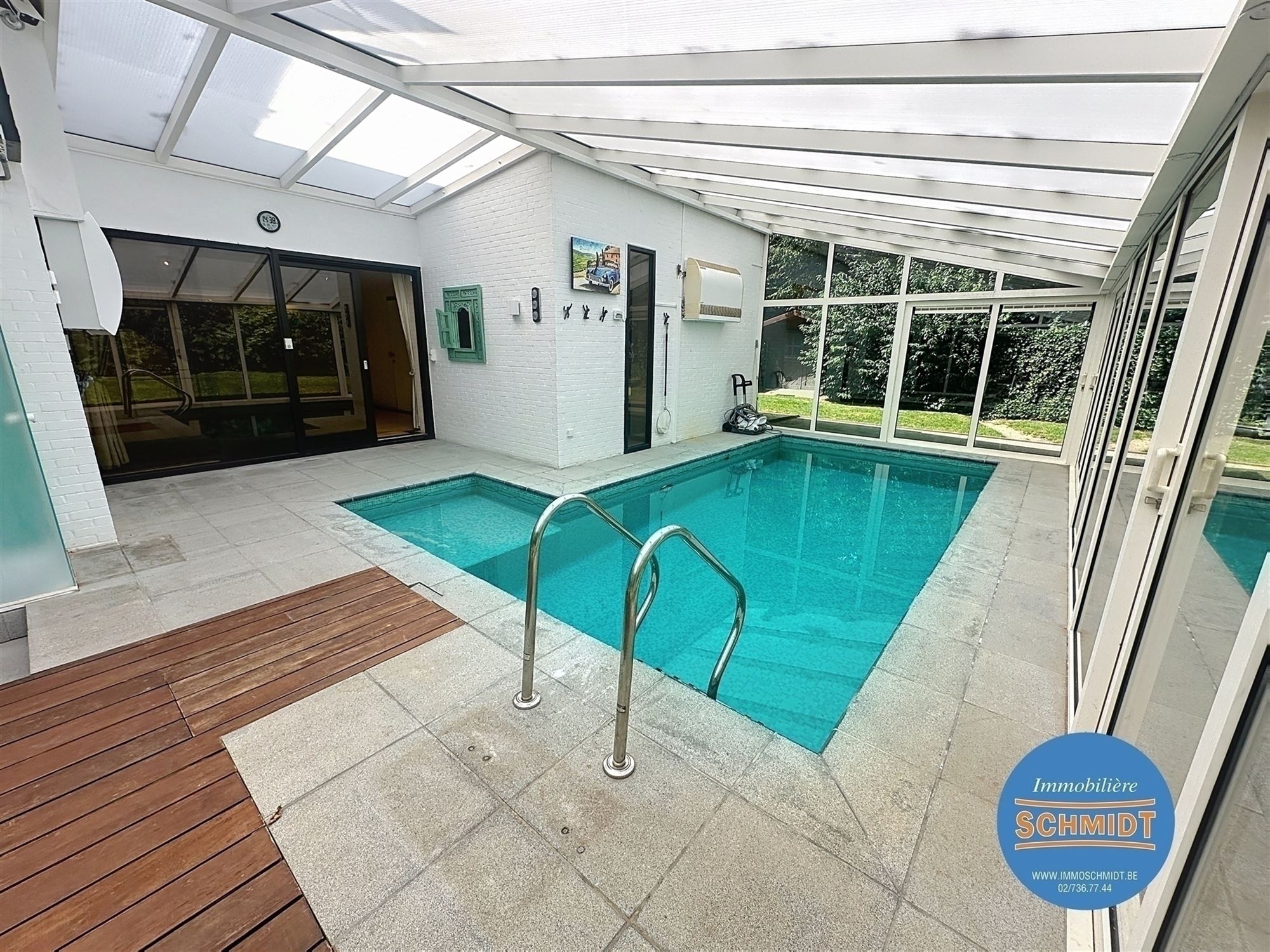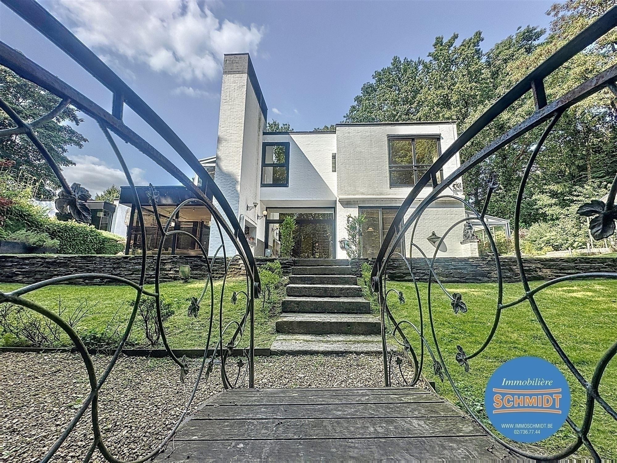 RIXENSART (Proximité du Centre de Rixensart et de la Gare ) : EXCEPTIONNELLE VILLA A RIXENSART – À proximité immédiate du centre et de la gare, exceptionnelle villa d’architecte construite en 1974 par Marc Libois, développant une superficie habitable d’environ 350 m² sur un terrain arboré de 47 ares, avec piscine chauffée et couverte, étang avec cascade d’eau, et jacuzzi extérieur. Cette propriété lumineuse et aux volumes généreux offre un cadre de vie unique alliant confort, nature et fonctionnalité. L’entrée principale dessert un vaste espace de vie de 120 m² comprenant un séjour avec cuisine ouverte. La maison dispose de 3 à 4 chambres, de deux salles de bains, de plusieurs terrasses bien orientées, ainsi que de nombreuses caves et espaces de rangement. Un accès indépendant permet de bénéficier d’un espace professionnel idéal pour une profession libérale, comprenant un hall d’entrée, une salle d’attente, une toilette, une douche et un grand bureau. Côté stationnement, la propriété est équipée d’un carport pour deux voitures, d’un garage double, ainsi que d’un espace de parking extérieur pour deux à trois véhicules. La performance énergétique est excellente avec un PEB de catégorie C !!! . Magnifique villa familiale aux finitions soignées, dans un environnement calme et verdoyant. Coup de cœur garanti.Au prix de 1 285 000€. Sur RDV 0475/345.135 - Plus de détails et autres biens sur www.immoschmidt.be